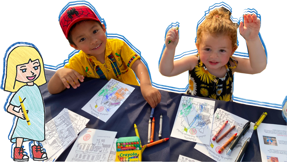 In 2017, GPA teamed up with Philadelphia writer and illustrator Michelle Dowd to create an imaginative coloring book that makes learning about Philadelphia’s history, culture, and global connections fun and engaging.Readers follow Caleb and Olivia as they chase their kite and explore cultural and historical sites throughout Philadelphia, including Independence Hall, the Philadelphia Zoo, and the Johnson House.